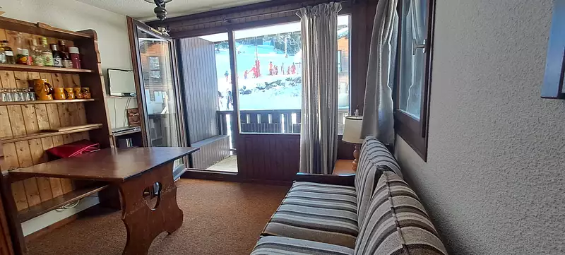 Laissez-vous séduire : ✨ Entrée fonctionnelle avec placard et coin montagne, idéal pour accueillir famille ou amis. ✨ Séjour baigné de lumière, exposé plein sud, ouvrant sur un balcon panoramique avec vue imprenable sur les pistes. ✨ Salle de bains et WC séparés pour plus de confort.