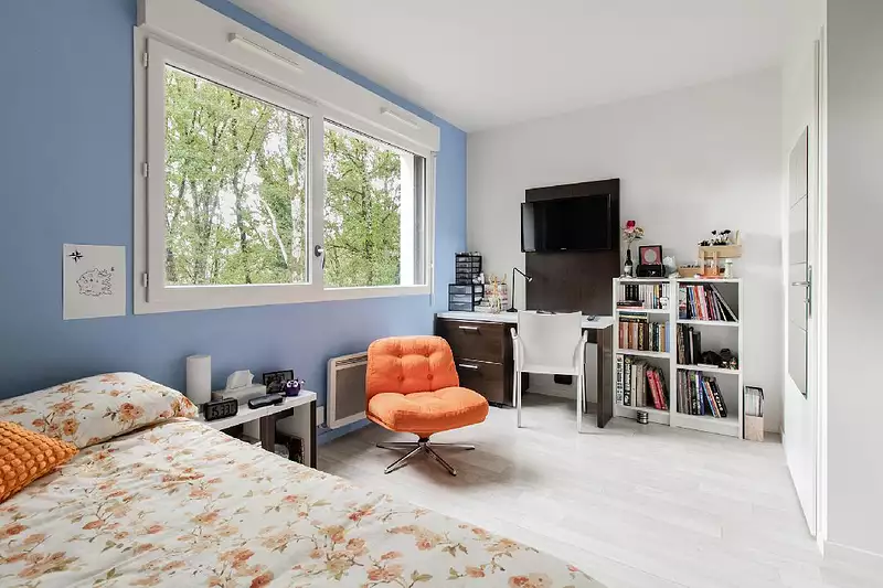Ce studio de 21,5 m² est situé au deuxième étage d'une résidence récente à Nantes, dans un quartier dynamique, à quelques minutes des écoles et universités. Très bien agencée, la pièce de vie comprend une kitchenette, une table et des chaises hautes pour les repas ainsi qu'un bel espace de travail (bureau, étagères, placard) et enfin, un coin nuit cosy.