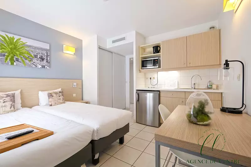 Notre agence 'AGENCE DU CENTRE' vous propose à la vente ce beau studio meublé avec climatisation. Balcon profond exposé sud dans un immeuble avec piscine. La mer à deux pas et tramway à 20 metres. Vendu avec un bail commercial Adagio. charges communes payé par la residence, louer 4950€ net propriétaire l'année. Belle opportunité!