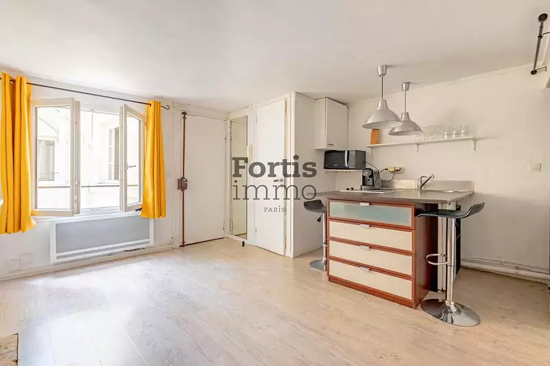 Charmant studio de 21,65 m² Carrez situé dans le prestigieux 1er arrondissement de Paris, au 6ème et avant-dernier étage d'un immeuble historique datant de 1750.