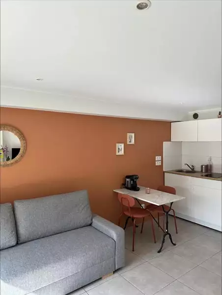 Studio composé d'un séjour ouvert sur une cuisine équipée et aménagée sur un séjour et d'une salle d'eau.