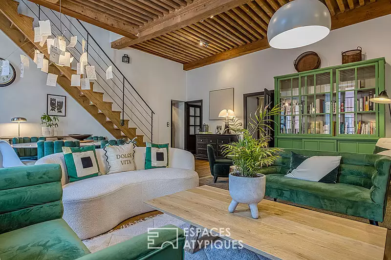 En plein coeur du centre historique de Chambéry, cet appartement duplex atypique de 220 m² Carrez marie subtilement authenticité et confort moderne. Situé au deuxième étage d'un immeuble de caractère, il séduit par ses généreux volumes et son charme singulier. Au premier niveau, l'appartement propose une vaste pièce de vie principale d'environ 47 m², lumineuse et raffinée, qui invite à la détente comme à la convivialité. Son plafond à la française en bois massif et sa cheminée d'époque renforcent l'atmosphère chaleureuse et authentique. Le balcon de la pièce de vie contemple la ville historique et permet d'y installer une petite table, la taille modeste de cet espace extérieur est compensée par une magnifique luminosité naturelle offerte par les grandes ouvertures. La cuisine contemporaine entièrement équipée, agencée en longueur avec des matériaux haut de gamme, souligne le cachet du bien. Ce niveau compte également trois belles chambres, un bureau idéal pour le télétravail, un dressing, une pièce de rangement ainsi que deux salles d'eau élégantes et fonctionnelles. Le niveau supérieur accueille une quatrième chambre, une salle de bain supplémentaire, un dressing indépendant, une mezzanine et une bibliothèque offrant un espace détente chaleureux, parfait pour un coin lecture intimiste. A deux pas des écoles réputées, commerces et restaurants branchés, ce bien d'exception est idéalement placé pour profiter pleinement de la vie urbaine tout en préservant tranquillité et intimité. Ce duplex unique, alliance parfaite entre tradition architecturale et confort contemporain, représente une rare opportunité sur le marché immobilier haut de gamme. Un véritable coup de coeur urbain à découvrir absolument. Plus de photos sur notre site Espaces Atypiques; CLASSE ENERGIE : C / CLASSE CLIMAT : C Montant moyen estimé des dépenses annuelles d'énergie pour un usage standard, établi à partir des prix moyens des énergies indexés sur les années 2021, 2022, 2023 (abonnements compris) : entre 2.800 Euros et 3.830 Euros. Bien soumis au régime de la copropriété, composée de 12 lots d'habitation. Les informations sur les risques auxquels ce bien est exposé sont disponibles sur le site Géorisques : www.georisques.gouv.fr Contact Eric : 06.63.90.01.80 Copropriété de 12 lots (Pas de procédure en cours). Charges annuelles : 2050 euros.