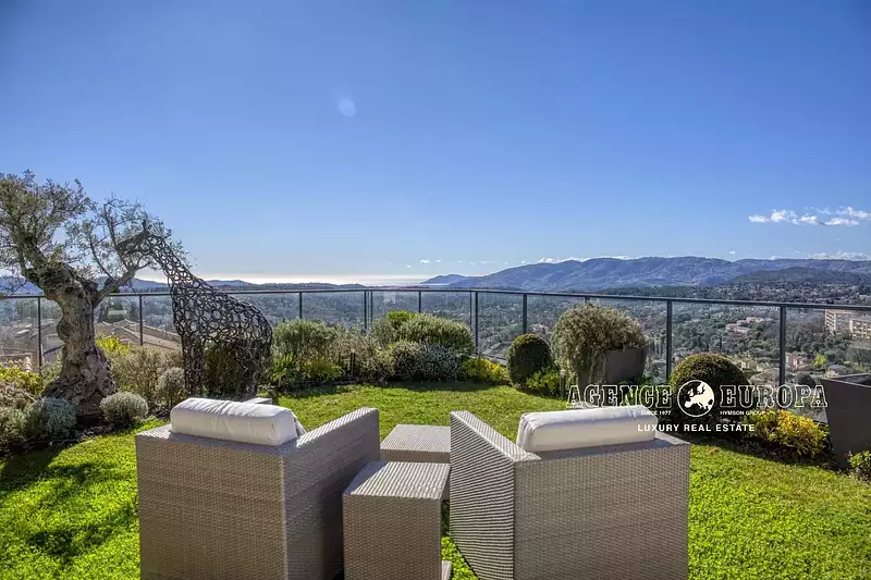 A seulement 20 minutes de Cannes, au sein d'une résidence récente et de haut standing avec piscine et sauna, magnifique penthouse d'environ 220 m² profitant d'une superbe vue panoramique sur l'ensemble du bassin Cannois jusqu'à la mer et le massif de l'Estérel. Vaste et agréable terrasse privative d'environ 170 m².