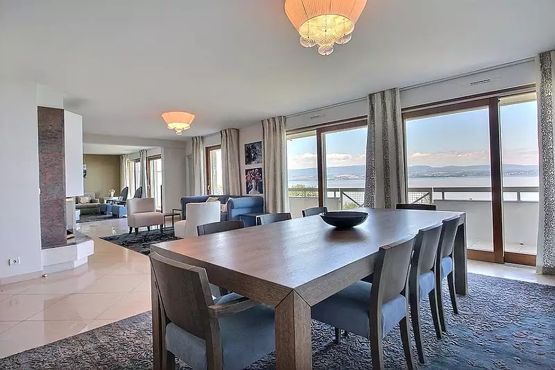 Splendide appartement en duplex de 220m² à Publier nous sommes à quelques minutes d'Evian-les-Bains dans un environnement calme et sécurisé qui combine espace, confort et une vue exceptionnelle sur le lac, idéalement pour une famille, une résidence principale ou secondaire. Au niveau principal nous avons un double séjour avec un coin cosy devant la cheminée et des grandes baies vitrées donnant sur le lac, un espace détente face au lac et un coin repas bénéficiant également de la vue panoramique; une cuisine indépendante, pratique et lumineuse, une suite parentale avec salle de bain, douche, W.C séparé et grands dressings. A l'étage nous y trouvons 3 chambres et 2 salles de douche, parfaite pour enfants ou invités. En annexe l'appartement possède 2 garages fermés, 4 places de parking (dont 1 couverte) et une cave privative en sous-sol. EXCLUSIVITE Copropriété de 60 lots - dont 18 lots habitation. (Pas de procédure en cours). Charges annuelles : 5648 euros.
