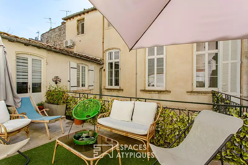 Situé au coeur de Nîmes, à quelques pas du monument classé à l'Unesco, cet appartement bourgeois de 224 m2 (loi Carrez) et 283m2 au sol propose des volumes généreux et un caractère singulier. L'escalier imposant et noble de cette petite copropriété dessert au 1er étage surélevé, une vaste entrée, un double salon de 57m2 et une grande cuisine/ salle à manger donnant sur une terrasse de 25m2 orientée plein Sud. Il propose cinq chambres dont une suite parentale avec dressing et une grande salle d'eau avec baignoire îlot et douche ainsi qu'un grand bureau et une deuxième salle d'eau. Les éléments anciens (belles hauteurs sous plafond, moulures, barres aux sols, cheminées en marbre, menuiseries...) côtoient avec délicatesse la modernité des lieux. De nombreux rangements et une cave complète ce bien. CLASSE ENERGIE: E / CLASSE CLIMAT: B - Montant moyen estimé des dépenses annuelles d'énergie pour un usage standard, établi à partir des prix de l'énergie de l'année 2021 : entre 3900 euros et 5340 euros abonnement inclus. Contact Alexandra : 06 18 07 74 02 Copropriété de 11 lots - dont 11 lots habitation. (Pas de procédure en cours). Charges annuelles : 2066.8 euros. Alexandra Cluchier (EI) Agent Commercial - Numéro RSAC : 890 423 205 - Nîmes.