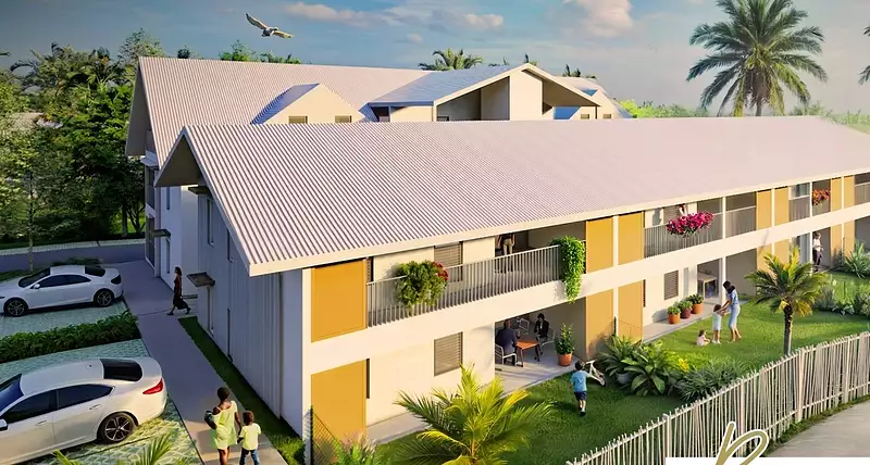Les logements bénéficient de varangues spacieuses habillées de claustras, favorisant l'ombrage et la ventilation traversante est-ouest grâce aux alizés.
