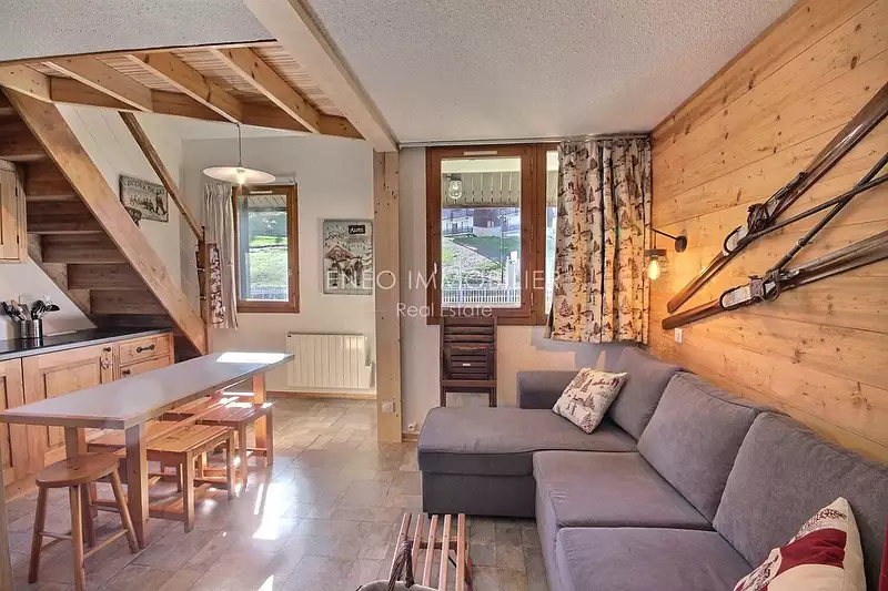 Découvrez ce superbe appartement en duplex avec mezzanine, idéalement situé au coeur de La Plagne Montalbert, dans une résidence avec ascenseur et gardien. Entièrement rénové avec goût, cet appartement allie charme montagnard et confort moderne. Il se compose d'un séjour lumineux avec cuisine ouverte, d'une salle de bains, d'un WC indépendant et d'une mezzanine offrant un bel espace nuit. Depuis le balcon exposé sud-est, profitez d'une vue dégagée et ensoleillée sur les pistes – un cadre idyllique pour savourer vos petits-déjeuners face à la montagne.