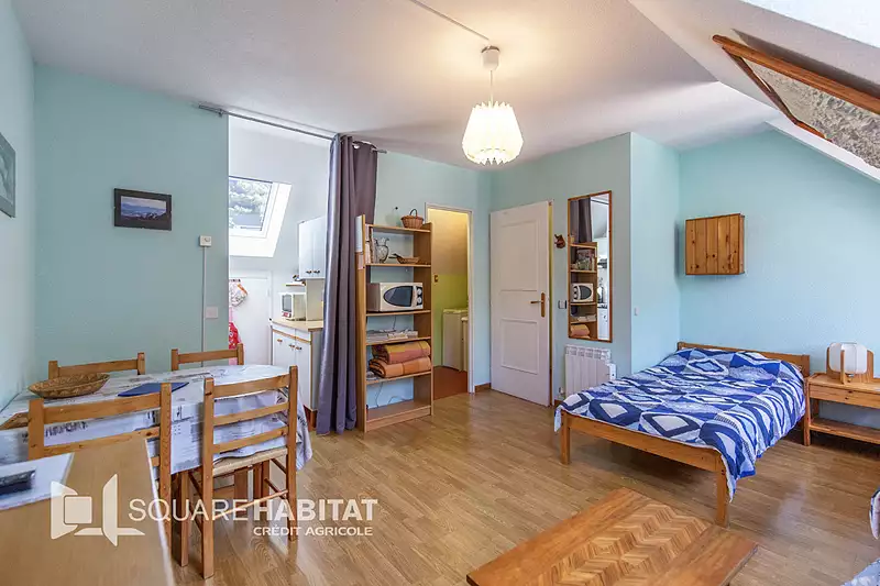 Au calme, dans une petite copropriété du centre de Luz, appartement au 2ème étage de type studio d'environ 28 m² au sol, comprenant une entrée avec placards et cellier, salle d'eau avec wc, et pièce de vie lumineuse avec coin cuisine. Parking extérieur privatif. Le bien est vendu meublé et équipé.