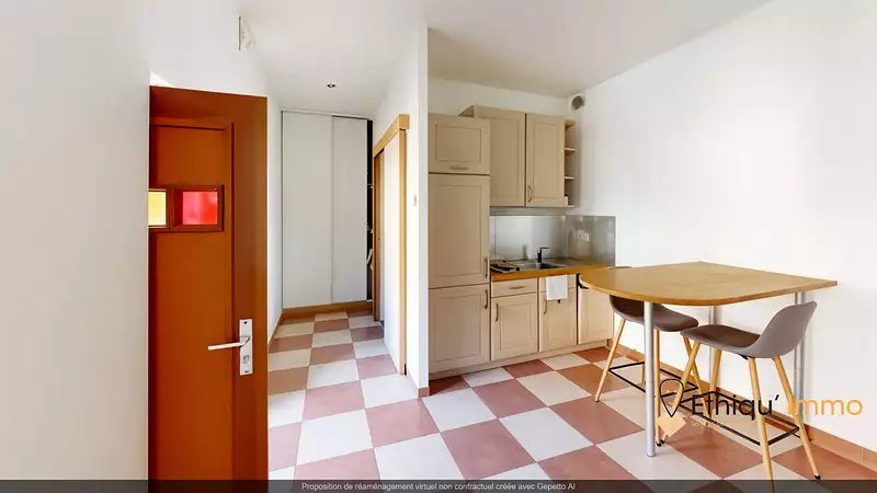 Rénové en 2007 et récemment repeint, il se compose d'une cuisine ouverte sur le séjour, d'une salle d'eau avec WC, de rangements pratiques et d'un coin terrasse à l'avant. Situé dans une petite copropriété, il bénéficie de très faibles charges.