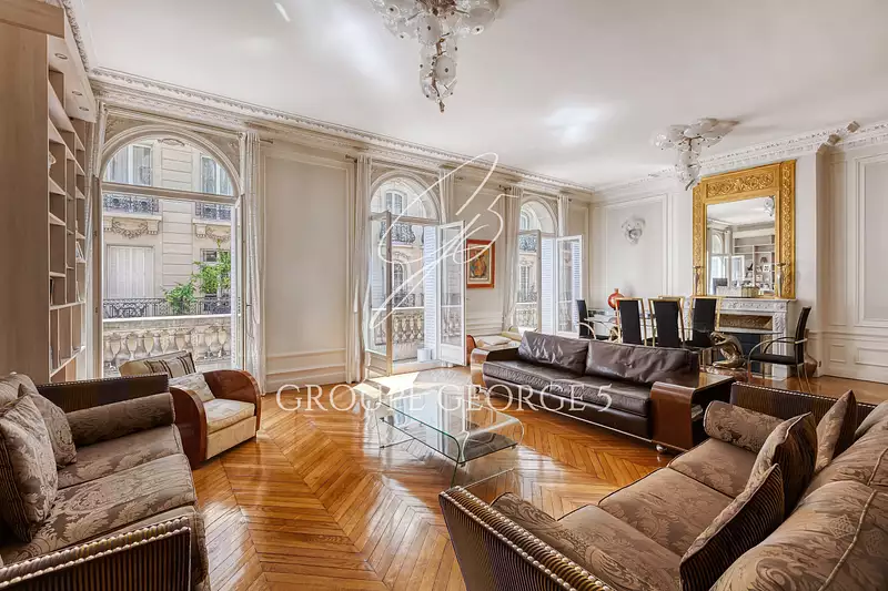 Situé au calme dans le quartier très prisé de l'OCDE, seul au deuxième étage d'un superbe immeuble en pierre de taille avec gardien à demeure et ascenseur, un élégant appartement de 239.50 m2, exposé Est, aux prestations de grand standing, alliant modernité et charme de l'ancien avec ses parquets point de Hongrie, moulures, cheminées et trumeaux, vitraux et double portes, sous une très belle hauteur sous plafond.