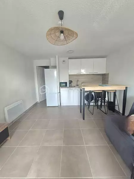 Ce studio se compose d'une pièce de vie lumineuse avec kitchenette équipée ouverte sur le salon-séjour accédant sur une agréable terrasse donnant sur le jardin, ainsi qu'une salle d'eau moderne avec wc.