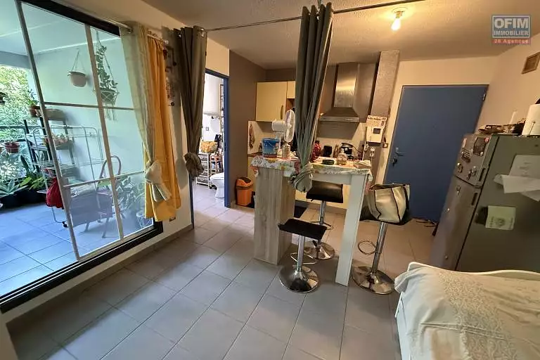 COMPROMIS DE VENTE EN COURS.L'agence immobilière OFIM vous propose à la vente sur le bas de la Rivière St Louis à 100 m d'altitude, proche de toutes les commodités dans la résidence sécurisée Les Jardins de La Rivière (2005), un studio en parfait état de 23,65 m2 plus une varangue de 9,11 m2 à l'abris du vent et de la pluie avec une belle vue végétale et mer sur le coté, sans vis à vis, sans bruit, au deuxième étage de la résidence. Bail en cours jusqu'à juillet 2028, la locataire paye chaque mois son loyer de 407€ + 25€ de charges de copropriété et 25€ à la charge propriétaire. Le studio se compose d'un séjour/chambre/cuisine et une salle d'eau avec WC. La taxe foncière s'élève à 550€. Le syndic est Ofim. La rentabilité brute de l'appartement loué actuellement est de 6,5%. La commission d'agence OFIM est charge vendeur. Pour tous renseignements ou visites, contactez François HART (Agent commercial) 0692651858 ou . - Annonce: