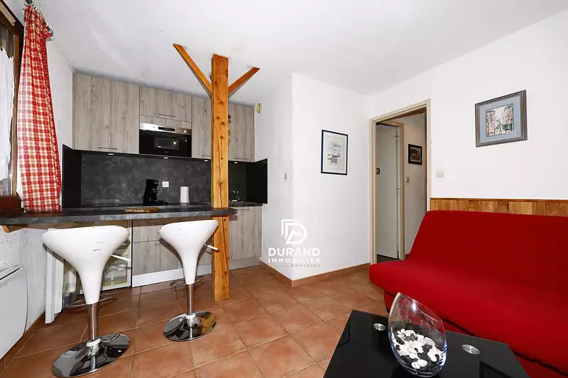 Dans une copropriété de 30 lots, T2 entièrement rénové avec soin de 23 m2. Une entrée, une cuisine américaine entièrement équipée, une pîèce de vie avec vue sur Peyniers, une petite chambre.