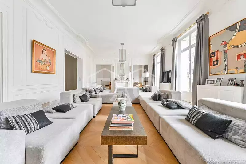 Belle adresse, immeuble haussmannien de belle facture, parties communes de grand standing, 2ème étage, superbe appartement familial et de réception de 248m2 , de type parquet-moulures-cheminées, doté d'une hauteur sous-plafond de 3,3m et d'un bel ensoleillement. Galerie d'entrée, vaste double réception, salle à manger, cuisine dinatoire entièrement aménagée et équipée, dégagement doté de très nombreux rangements intégrés, trois chambres de belle taille (possibilité d'en créer une quatrième), trois salles de bains, trois toilettes. Cave. Parking en location à proximité.