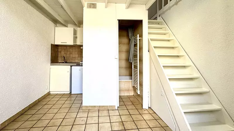 Studio bien agencé de 24 m2 avec pièce de vie et grande mezzanine à l'étage (vraie pièce de nuit avec une belle hauteur sous plafond).