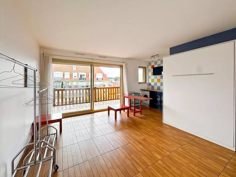 Spacieux studio composé d'une entrée avec placards, séjour avec grand balcon/terrasse exposé SUD, cuisine aménagée et équipée. Salle de bains avec WC. Une cave complète ce bien.