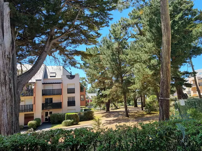 Agréable studio avec jardinet clos exposé plein sud situé au rez-de-chaussée d'un ensemble immobilier implanté dans un magnifique parc arboré à 500 mètres de la plage. Entrée + coin cabine, salle de bains, wc. Pièce de vie avec coin cuisine aménagé ouvrant sur la terrasse et le jardinet. Une piscine sécurisée ouverte en juillet et août. Faibles charges. Parking libre dans la résidence. (5.52 % honoraires TTC à la charge de l'acquéreur.) Copropriété de 130 lots - dont 130 lots habitation. (Pas de procédure en cours). Charges annuelles : 800 euros.