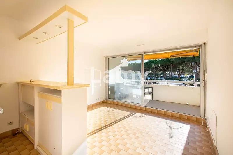 PORT CAMARGUE - Plage Sud. Dans une résidence sécurisée en 1ère ligne mer. Studio cabine en rez-de-chaussée surélevé. Très lumineux avec son exposition Est.Comprenant une entrée / cabine, salle de bain, wc séparé et séjour cuisine donnant sur une terrasse de 7,23m².