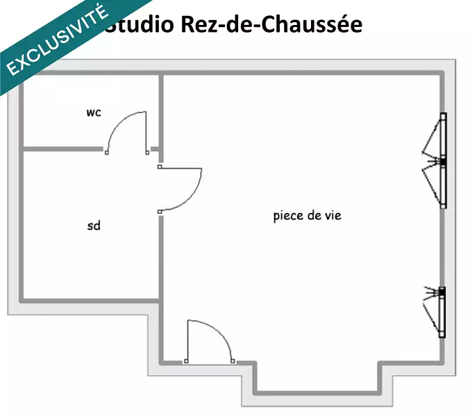 Il se compose d’un séjour avec cuisine ouverte, d’une salle de bains et un WC (voir plan).