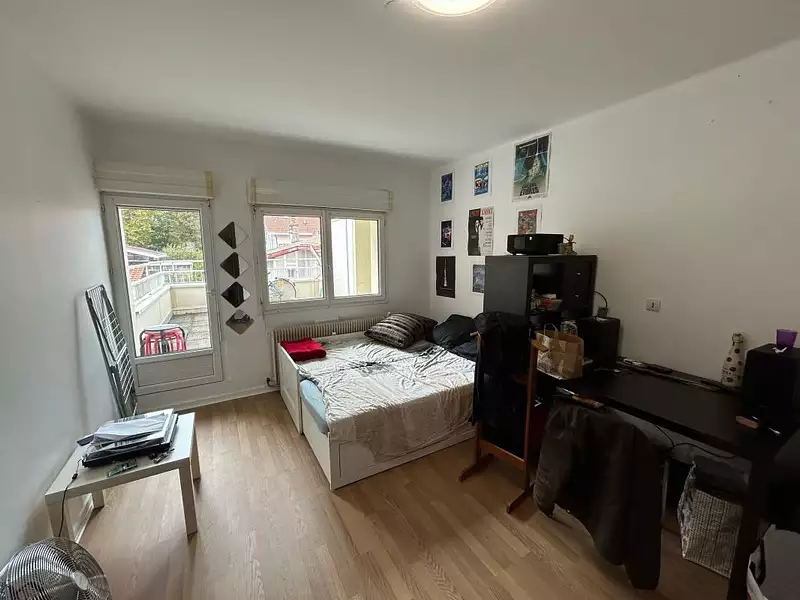 L'appartement de 24m² dispose d'une entrée avec placard, une grande salle d'eau WC et une pièce de vie avec kitchenette aménagée. Le plus, une jolie terrasse de 14m² avec vue sur le parc Razon.
