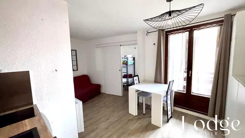 Puy St Vincent 1700, dans résidence bien entretenue, RETOUR SKIS AUX PIEDS, agréable Studio + coin-montagne, avec balcon, vendu meublé et équipé :