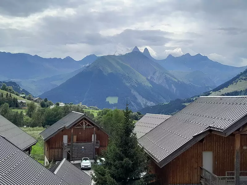 En pleine propriété, à la Chal à Saint Jean d'Arves à 150 mètres des pistes de ski, appartement de type T1 d'environ 24 m2 au premier étage comprenant une entrée, un coin montagne, une salle de bain, un wc indépendant, un placard, un séjour salon coin cuisine équipée, un balcon. Parking extérieur et casier à ski.