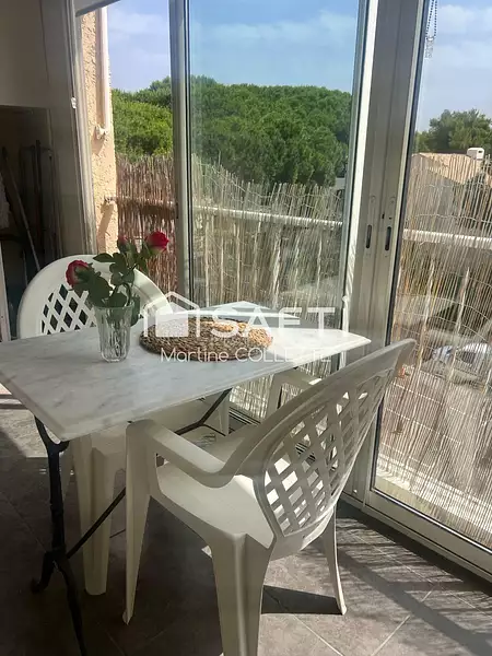Résidence "la Coudoulière" sécurisée et fermée Appartement T2 comprenant un hall d’entrée, un séjour, une cuisine us équipée et aménagée, un coin nuit avec un lit en 140 garantit des nuits confortables, une salle d'eau, un wc indépendant. Un balcon. Expo sud-est. Proche de la mer et des commerces.Vendu meublé. Une place de parking privative.