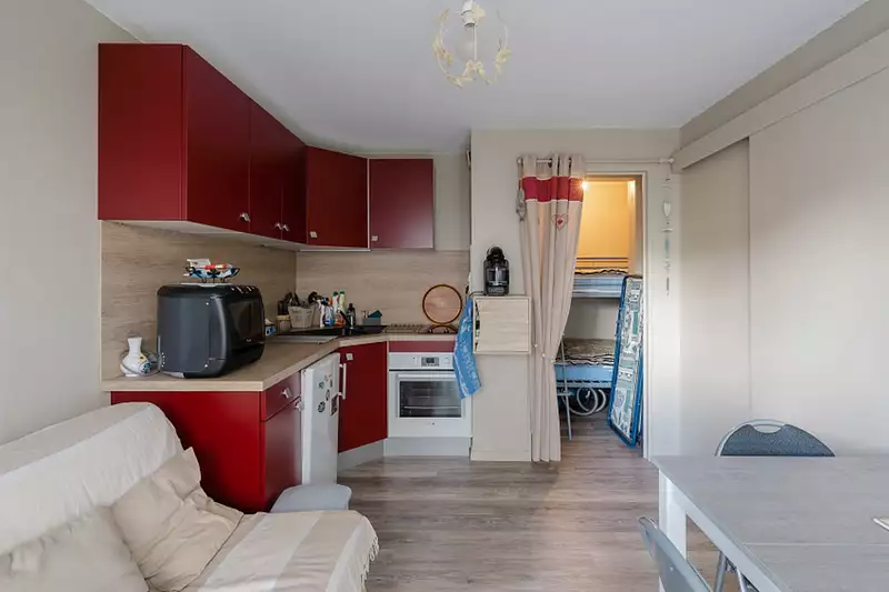 EN EXLCUSIVITE - Venez découvrir cet appartement 2 pièces avec jardin joliment aménagé, exposition sud, accès privé. Comprenant séjour avec cuisine aménagée et équipée, pièce cabine (2 couchages), une chambre, salle de bains wc. A deux pas de la plage et du lac de Villers sur Mer. Navette gratuite à disposition toute l'année.