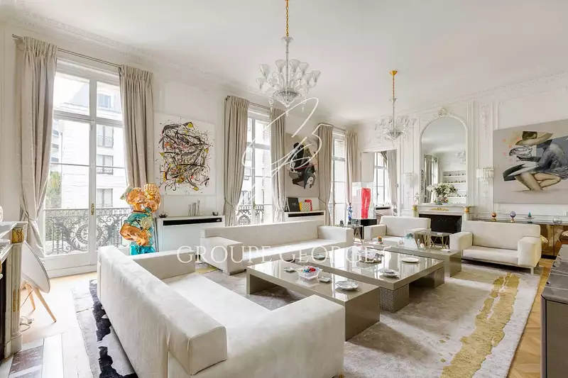 Au sein d'un immeuble haussmannien de standing, situé dans la prestigieuse rue François 1er et à l'étage noble, nous vous proposons un appartement familial de 255 m2 offrant une vaste entrée desservant une double réception, une salle à manger attenante, une cuisine équipée indépendante.