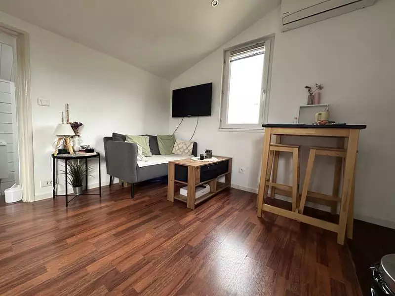 Situé au deuxième étage, l'appartement de 25 m² habitables et 14,5 m² Carrez est composé d'une cuisine ouverte sur l'espace de vie, d'une salle d'eau avec WC ainsi que d'une pièce supplémentaire pouvant servir de chambre. Il est équipé d'une climatisation réversible pour le confort de ses occupants été comme hiver.