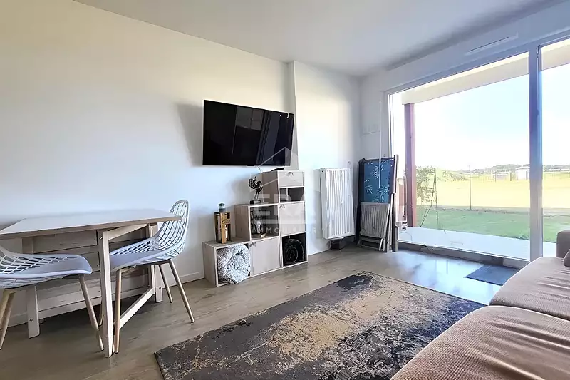 Situé dans une résidence récente et sécurisée, il offre une agréable pièce de vie avec cuisine équipée et coin salon ouvrant sur une terrasse prolongée d'un jardin bien exposé. Une salle d'eau moderne avec douche à l'italienne complète l'ensemble.