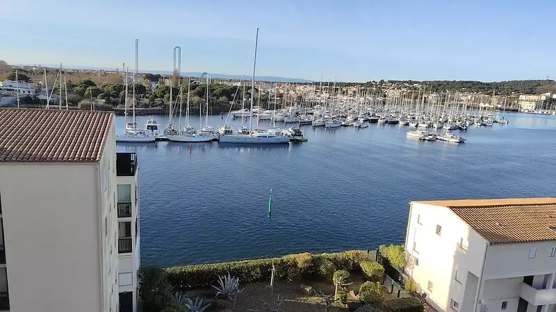 Le Cap d'Agde - Situé sur l'île des pêcheurs: Vue panoramique ( vue PORT ET MER ), 2 pièces + mezzanine, terrasse fermée et vitrée, dernier étage avec ascenseur. Comprenant: Entrée, 1 chambre, S/eau avec wc, coin cuisine équipé sur séjour. ( loggia récupérée vitrée Ouest ) (Total sol 25.5m²); PISCINE et Tennis dans la résidence sécurisée. Vendu meublé. Copropriété de 316 lots, charges 1042€/an, plan de sauvegarde néant. DPE E255/GES C30; Prix honoraires inclus à la charge du vendeur.