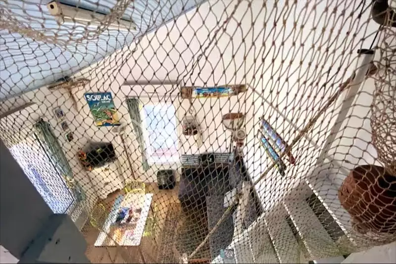 - Une mezzanine ouverte avec deux lits simples (hauteur sous plafond basse)