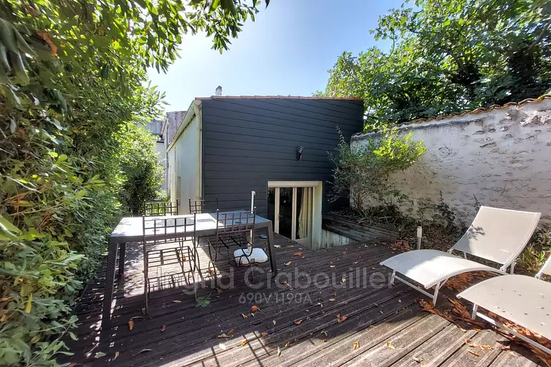Il dispose d'une pièce de vie avec petite cuisine aménagée, le tout ouvrant sur une terrasse donnant sur le jardin privatif, une salle d'eau et des toilettes.