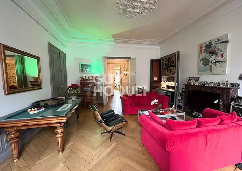 Au centre-ville non piéton de Chalon sur Saône, cet appartement de la fin du 18ème saura vous séduire par ses volumes et son cachet. Situé dans un immeuble sécurisé disposant d'un magnifique escalier, il offre un espace de vie spacieux et plein de charme, Les trois belles pièces de réception promettent des moments conviviaux entre amis tandis que les 4 chambres et le bureau offrent un cadre de vie idéal pour une famille. Les cheminées, boiseries, moulures, parquet en chêne en pointe de Hongrie et les belles portes de réception apportent un caractère chaleureux et élégant. Les différentes pièces de cet appartement sont distribuées par un large couloir et la cuisine donne accès à une petite terrasse. Pour encore plus de rangements, vous disposez au dernier étage d'un grand grenier d'environ 46m² ainsi qu'un atelier, Pour le stationnement, une place de parking est réservée au logement A visiter pour les amoureux de l'ancien! Cet appartement vous est proposée au prix de 435 000 euros. Honoraires à charge VENDEUR. Les informations sur les risques auxquels ce bien est exposé sont disponibles sur le site Géorisques : www.georisques.gouv.fr. Cet appartement a une classe énergie D (168 kWh/m² annuels). Quant à la classe climatique, cette dernière est notée D (30 Kg CO2/m²/an). Le montant moyen des dépenses annuelles d'énergie pour un usage standard estimé entre 3750 euros et 5130 euros et indéxé sur les années 2021.2022.2023 (abonnements compris). Votre agence immobilière Guy Hoquet CHALON-SUR-SAÔNE vous invite à découvrir toutes les originalités de cet appartement à vendre en prenant RDV avec l'un de nos négociateurs immobilier. Christine DESSENDRE agt co RSAC 791951031 Copropriété de 38 lots - dont 9 lots habitation. (Pas de procédure en cours). Charges annuelles : 1296 euros. Christine DESSENDRE (EI) Agent Commercial - Numéro RSAC : 791951031 - .