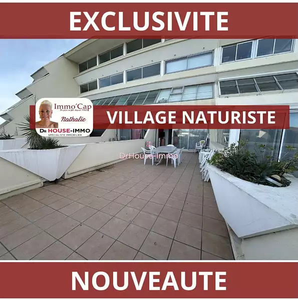 Au village naturiste dans la résidence sécurisée Héliopolis K , proche de tous les commerces et de la plage, il s'agit un appartement de 26.3m2 de surface habitable avec une très grande terrasse de 43 m2 situé au 1er étage de la résidence AU CALME