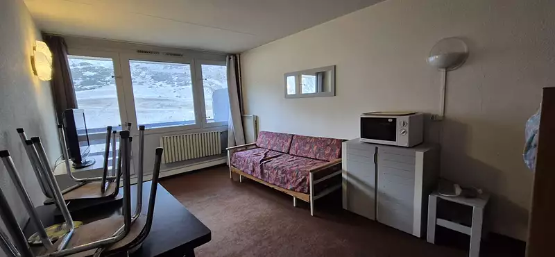 VUE SUD EXCEPTIONNELLE - STUDIO A RÉNOVER ENTIEREMENT! L'opportunité de créer votre pied-à-terre sur mesure ! Ce studio d'origine, idéalement exposé Plein Sud, offre une vue panoramique incroyable depuis son balcon ensoleillé. A rénover entièrement : Cuisine séparée à l'entrée. Séjour salon (prévu pour 4 personnes). Salle de bains avec WC. Balcon SUD pour profiter du soleil et de la vue. Les plus pratiques : Cellier sur le même niveau. Local à skis inclus. (File 44) Idéal pour un investissement locatif ou votre futur refuge en montagne. Fort potentiel après modernisation. A visiter sans tarder !