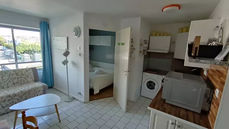 LE CAP D'AGDE: Proximité plage de la Grande Conque et Plagette ( avant port ), appartement T2/loggia + PARKING. 1er étage. Composé d'une entrée, salon + loggia ( vitrée + volet roulant ), 1 chambre avec placard, coin cuisine équipé. S/eau, wc séparé. Vendu meublé. PARKING sécurisé.. Très bon état général. Copropriété de 98 lots.( Vendu honoraires inclus charge vendeur.) DPE C /202 et GES A/6 ...Charges de copropriété: 853 €/an