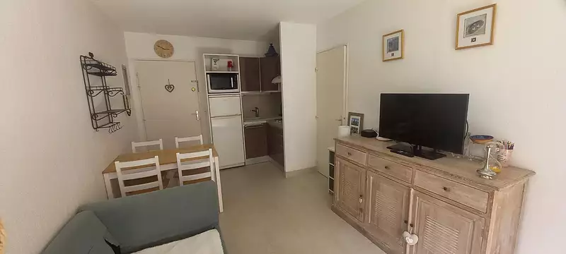 VENDU par l'agence le Portique ! Résidence Le Saint-James EXCLUSIVITE ! Lavandou centre - Cet appartement T2 cabine rénové avec des matériaux de qualité est situé au centre-ville du Lavandou et à 150 m de la plage. Vous bénéficierez d'une grande terrasse de 11 M² idéale pour les repas en famille. Il se compose d'un séjour confortable avec cuisine US, d'une chambre, d'une salle d'eau,, un WC séparé, et d'un coin cabine (prévu pour lits superposés) actuellement aménagé en grand dressing. Vous n'avez plus qu'à poser vos valises ! Avec son emplacement au coeur des commerces et sa proximité immédiate de la plage centrale du Lavandou, vous pouvez "tout faire à pied". Vendu avec une place de parking . Bien rare au Lavandou ! Pour le visiter merci de contacter Marlène Ferrari (EI) au 06 62 13 05 88. (6.67 % honoraires TTC à la charge de l'acquéreur.)