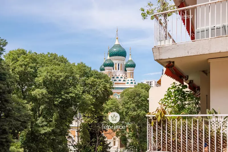 Nice Parc Impérial / Avenue Gay :Situé au quatrième étage d’un petit immeuble niçois, dans le quartier recherché du Parc Impérial, charmant studio de 27m2 avec vue dégagée sur la Cathédrale Saint-Nicolas.