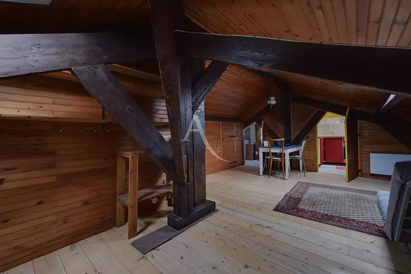 Pantin Dans un immeuble 1930, au dernier étage, deux pièces sous les combles de 26 m2 environ carrez et 72m2 au sol . Vous aimez le calme , le bois , l' atypique , vous désirez investir Copropriété de 30 lots - dont 20 lots habitation. (Pas de procédure en cours). Charges annuelles : 1200 euros.