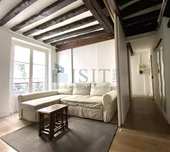 Paris 3éme, Haut Marais, Rue de Gravilliers - dans une rue commerçante, mais calme, bel immeuble très bien entretenu avec ascenseur et local a vélos. Nous proposons un joli deux pièces de 26,88mc Loi Carrez, en très bon état, au 2e étage avec ascenseur, comprenant un séjour avec canapé-lit, une cuisine separée tout équipée, une salle de douche avec toilettes et une chambre. Parquet en bon état, décoration moderne , double vitrage, nombreux rangements. Lumineux et calme. Eau chaude et chauffage individuels électriques. Disponibilité immédiate. Pour info -