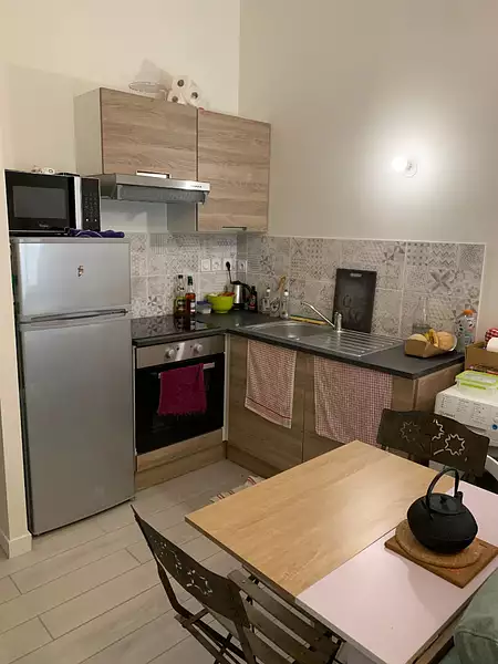 Appartement de type 2 avec TERRASSE ! Séjour avec cuisine aménagée et équipée, une chambre avec placard, salle d'eau / wc. Logement actuellement loué (5.62 % honoraires TTC à la charge de l'acquéreur.) Copropriété de 11 lots - dont 11 lots habitation. (Pas de procédure en cours). Charges annuelles : 500 euros.