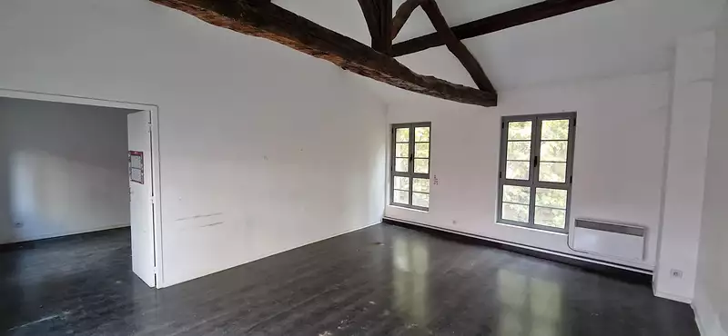 - En R+1 : appartement T3 en duplex de 90m2 et grand plateau vide à aménager de 180m2 (idéal bureaux/activités tertiaires).