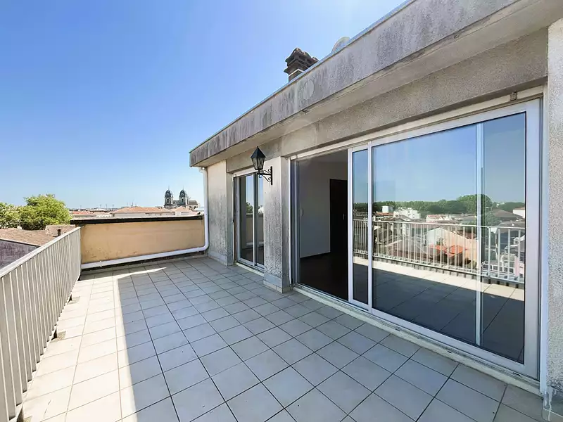 Montez jusqu'au 5è et dernier étage, avec ascenseur pour venir découvrir cet appartement T1 de 27 m2 avec une agréable vue dégagée sur la cité thermale. Il se compose d'une pièce principale, un coin nuit, une cuisine aménagée et équipée, salle de bains avec wc. Une vaste terrasse de 24 m2, accessible par la pièce principale et la cuisine, vous permettra de profiter pleinement des journées ensoleillées à l'abri des regards. En plus une cave en sous-sol. A proximité de toutes commodités. (7.78 % honoraires TTC à la charge de l'acquéreur.) Copropriété de 47 lots (). Charges annuelles : 468 euros.