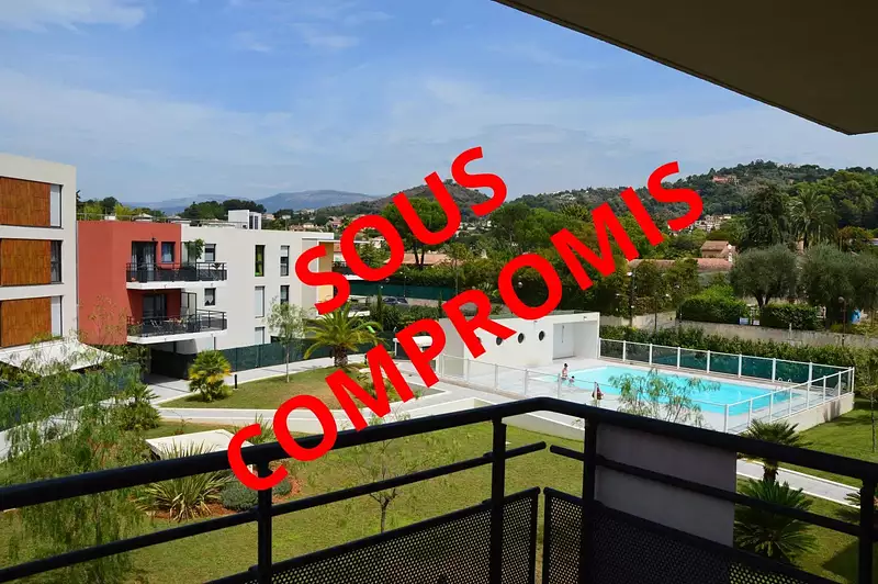 Studio de 28 m² avec terrasse dans une copropriété avec piscine, pièce principale avec cuisine équipée, salle d'eau avec wc, terrasse et parking en sous sol.