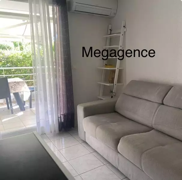 Dans une tres belle residence securisee comprenant piscine et jardins luxuriants appartement avec sejour - kitchennette- chambre cabine- salle d eau avec wc - terrasse et jardinet - 1 place de parking - proche des plages et des commerces . A voir vite .