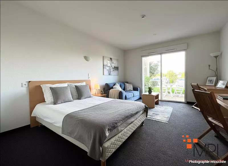 Votre agence MPI 35 vous propose de découvrir ce studio meublé de type 1, d'une surface d'environ 28 m², situé en rez-de-chaussée d'une résidence hôtelière bien entretenue, à proximité immédiate des commerces, transports en commun et autres commodités. Vous serez séduit par sa localisation, son agencement optimisé et sa fonctionnalité !! Le logement est actuellement loué via un bail commercial à une société spécialisée, vous garantissant un revenu locatif annuel d'environ 4 000 euros sans contrainte de gestion au quotidien ! Implanté sur la commune de Le Rheu, plus précisément dans le secteur des Landes d'Apigné, aux portes de la métropole rennaise, cet appartement se compose d'une entrée avec placard, menant à une pièce de vie lumineuse faisant office de salon-séjour, intégrant un coin nuit avec rangements, ainsi qu'un espace kitchenette. La pièce s'ouvre sur une agréable terrasse de près de 8 m². Vous y trouverez une salle d'eau avec WC. Pour plus de confort au quotidien, une place de stationnement privative et sécurisée vient compléter l'ensemble. Si vous recherchez un investissement sécurisé, avec une gestion simplifiée et un rendement stable, n'attendez plus ! Contactez dès maintenant notre agence Mon Partenaire Immobilier au 02.57.67.10.70 pour organiser une visite. *Prix affiché hors honoraires de rédaction d'acte et frais de notaire. (10.71 % honoraires TTC à la charge de l'acquéreur.) Copropriété de 120 lots - dont 51 lots habitation. (Pas de procédure en cours). Charges annuelles : 743.71 euros.