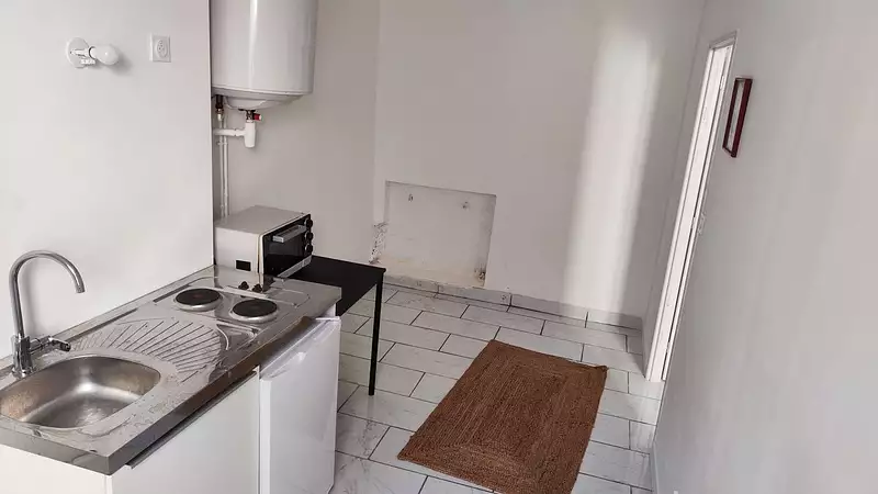 Le bien se compose d'un séjour avec un coin cuisine entièrement équipée et aménagée, nous aménageons un espace nuit avec canapé convertible 2 places et nous rénovons entièrement la salle d'eau avec bac à douche extra plat.