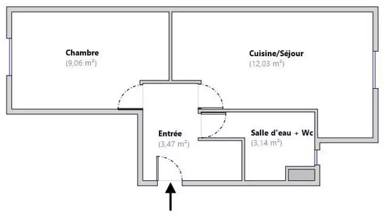 | 27,7 m² - 2 pièces - 1 chambre | Dernier étage (6ème) avec ascenseur |